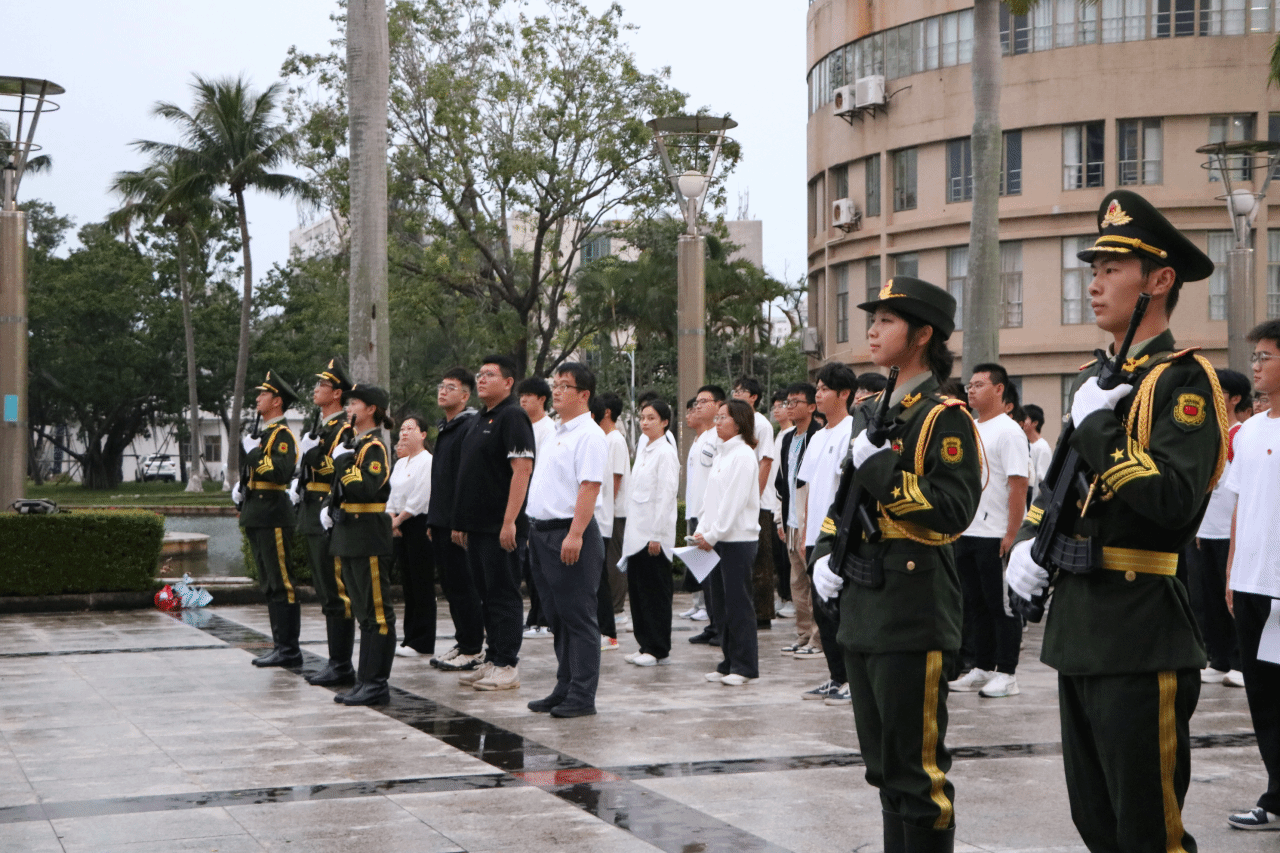 仪式第三项,由学生代表兼升旗仪式主持2025级体育学院休闲体育专业冯浩航同学作为学生代表发表题为《自贸东风起 琼州万象新》的国旗下演讲,他结合自身感悟,号召同学们以 “自贸港一代” 的使命担当,将个人理想融入国家发展大局,勤学笃行、敢为人先,为自贸港建设注入青春动能。
